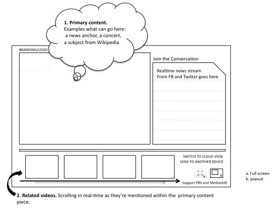 Here are a couple of quick wireframes I mocked up for a really cool contest hosted over at MediaShift’s Idea Lab, in conjunction with The Knight Mozilla News Technology Partnership. These ideas demonstrate how new web video tools can transform storytelling in the news. From APIs to Creative Commons, live-streaming tools to interactive maps, we now have the ability to craft stories in new and compelling ways. And when it comes to video, the opportunities are endless!